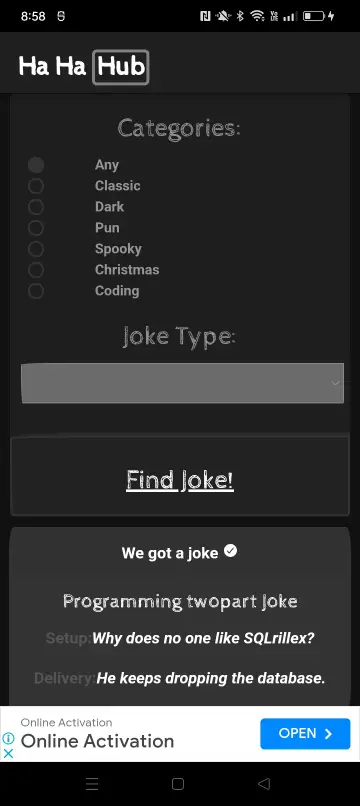 - Features API integration for a vast joke collection, a user-friendly UI/UX design with HTML5 and SCSS, and includes Google AdMob for monetization.